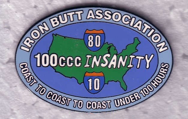***Special rules apply to back-to-back rides. See here. Rules You must obtain DBR every 350 miles. You may take any route you like. Your official time is determined by the starting and ending receipts. PLEASE check these documents and make sure the clock and date are correct! Spotwalla.com is strongly recommended but not required. Remember it is YOUR responsibility to prove you did the ride. Spotwalla goes a long way towards this proof. Merchandise: Available through the ibaestore. Pins: (Not true to size--pins are 1.75 inches tall.)